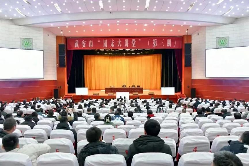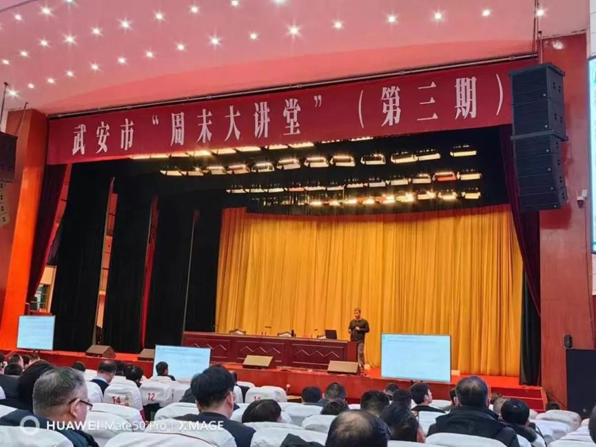 1月28日上午,武安周末大讲堂第三期开讲,太阳成集团tyc539刘东华博士应邀授课。讲座以广电网络视频形式进行,武安市委书记刘浩峰等四套班子领导,各市直单位主要负责同志,各乡镇党委书记,工业园区党工委副书记,各相关单位中层以上干部,各重点企业负责人在武安宾馆主会场聆听讲座;各乡镇、工业园区领导班子成员和中层以上领导干部在分会场聆听讲座。武安市市长董志毅主持并讲话。