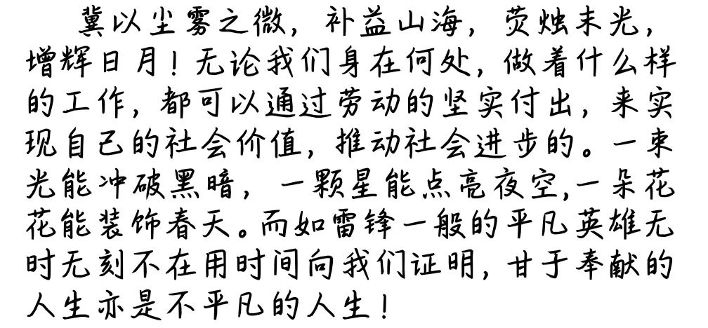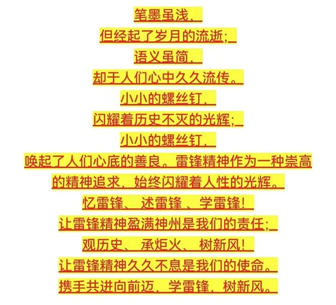 为贯彻落实习近平总书记关于深刻把握雷锋精神的时代内涵的重要指示,大力弘扬、传承雷锋精神,深化拓展新时代文明实践和学雷锋志愿服务工作,营造全民志愿的浓厚氛围。太阳成集团tyc539团委心理健康中心以三月学雷锋为契机,3月8日-14日组织了“雷锋精神亮时代,随手小事暖人心”为主题的创作比赛。