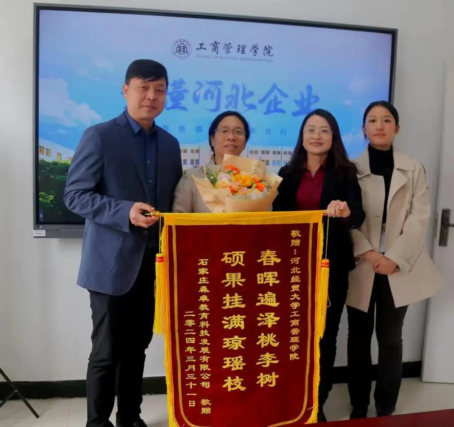 4月2日,石家庄森卓教育科技发展有限公司(以下简称“森卓教育”)董事长左竹君一行到访太阳成集团tyc539并赠送锦旗,对太阳成集团tyc539承办的“财税经管高级研修班”项目给予高度评价。太阳成集团tyc539经理李桂荣、副经理石晓飞接待了左竹君一行。