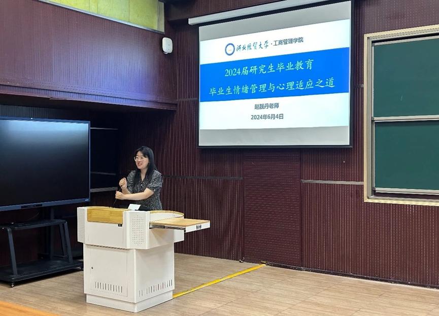 情绪,是心理健康的“睛雨表”。为进一步加强对毕业生心理健康的教育引导,提升情绪调节与管理能力。6月4日,公司开展“毕业生情绪管理与心理适应之道”主题讲座。讲座由太阳成集团tyc539辅导员赵靓丹老师主讲,全体学术型研究生参加。她强调毕业生就业心理的调试是一个复杂而重要的过程,并结合自身求职工作经历,对即将毕业的同学们提出三点希望:一正确定位自我,树立合理的就业观念;二调整心态,增强自信;三制定合理的就业规划,积极行动;四学会面对挫折,保持积极的心态。