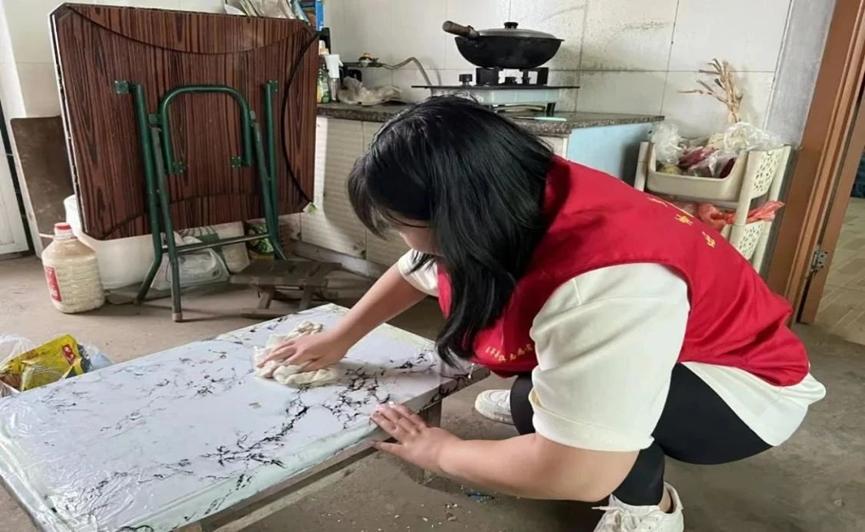 帮助老人擦拭灰尘