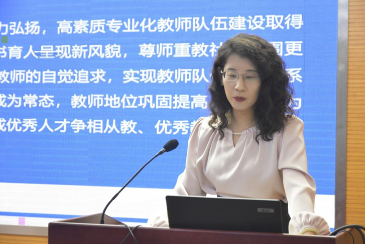 随后,李桂荣经理向教师们传达了刘兵书记在学校处级干部大会上的讲话精神。一方面,回顾了上半年工作要点,同时强调了随着职称管理办法的重新修订,教师聘期考核难度会进一步提升,希望各位教师以“教学为要、科研为基”,不断提升自己的教学及科研水平。另一方面,部署了下半年工作重点,并对“党建”“改革”“考核”“奖惩”四个关键词作了阐释。一是以高质量党建引领高质量发展,提升党建品牌的内涵和辨识度;二是进一步深化新财经教育改革;三是着力实施考核评价改革;四是通过“奖惩立人”,激励担当作为。此外,还提出大力加强团队建设、继续做强服务县域经济发展、扎实做好服务师生建设以及严肃开展集中整治工作等要求。