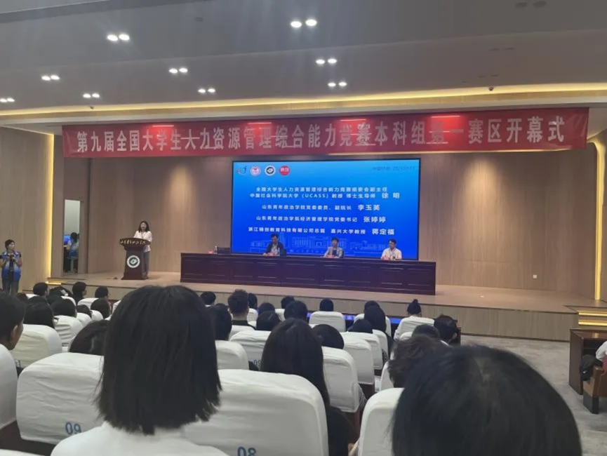 本次区域赛有来自北京、河北、内蒙古、山东、山西和天津6个省、自治区、直辖市的383支参赛队伍参与。本科组分为线上和线下两个环节,其中线上环节分为“HR综合知识测评”和“HR模拟经营”两个模块,线下环节进行“HR模拟实战”。HR综合知识测评采用团队赛的形式,使用竞赛官网在线进行答题,主要从人力资源规划、招聘与甄选、培训与开发、绩效管理、薪酬管理、员工关系管理模块出发,结合案例对重要知识点进行考核。采用分组对抗与模拟经营的方式,各参赛队组建不同的公司,基于同一案例背景,通过《人力资源管理智能仿真与竞赛对抗平台》软件操作进行对抗竞争。对软件内置的人力资源规划、工作分析中心、招聘与甄选中心、培训与开发中心、绩效管理中心、薪酬管理中心、员工关系管理中心、产品中心八个模块进行操作,实现人力资本投资回报率和人力价值提升。HR 职业实战主要针对企业提供的真案例、真问题、真场景、真需求中的企业高级人员招聘、绩效反馈面谈、薪酬争议、劳动争议、HR数字化设计等核心职业情景,选择相应选题方向后,结合人力资源管理专业知识,通过PPT答辩的方式进行展示。