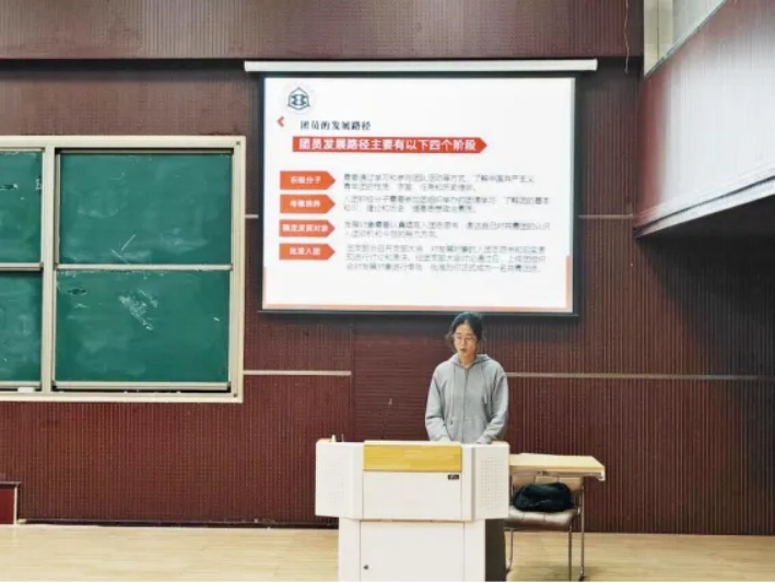 团课第四课由团委事务组织中心负责人张静雯授课。在课上,张静雯详细讲解了中国共产主义青年团的组织架构。随后,她重点提出了成为一个优秀共青团员的两点要求:一是团员应具备的硬性要求及高度的思想素质和道德素质,二是团员的发展路径即积极分子、考察培养、确定发展对象、批准入团。她呼吁广大青年要努力提高自身思想道德素质,在日常学习和团组织活动中抓住机会,扎根实践,勇于在实践中摸爬滚打,锤炼自身过硬本领,用奉献和责任绘就新时代青年的青春担当。