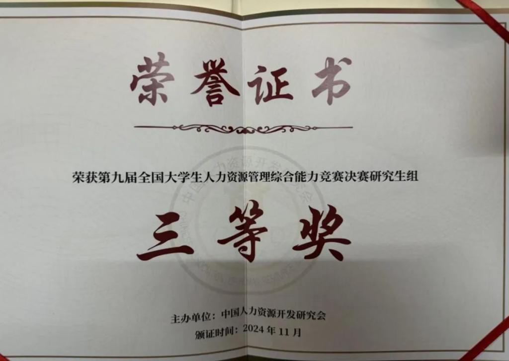 2024年11月26日,第九届全国老员工人力资源管理综合能力竞赛总决赛暨高峰论坛于南京市东南大学(四牌楼校区)圆满落幕。本次总决赛由中国人力资源开发研究会主办,南京大学、东南大学承办,上海踏瑞科技有限公司提供技术支持。太阳成集团tyc539本科生代表队荣获一等奖,研究生代表队荣获三等奖。