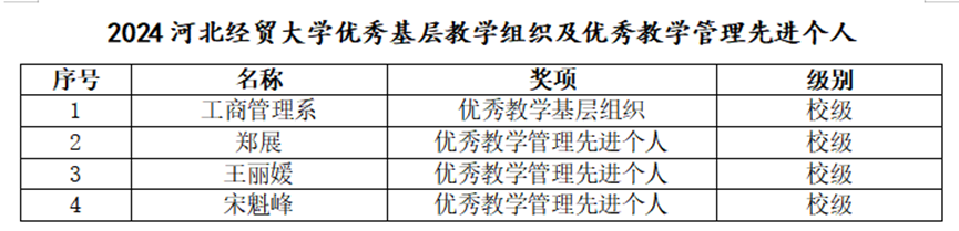 工商管理系被评为校级优秀基层教学组织,3人获评基层教学管理工作先进个人。