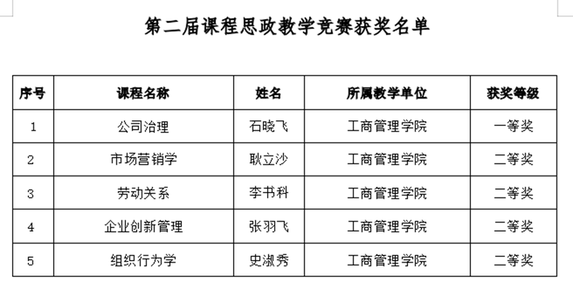 工商管理系获批校级应用型转型示范培育专业。耿立沙副教授荣获第二届中国财经高校慕课联盟同课异构教学竞赛二等奖。