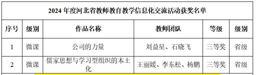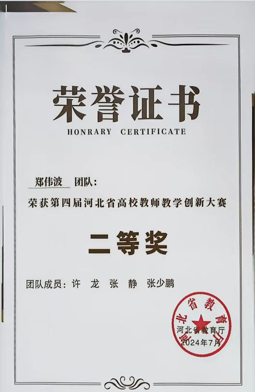 公司《人力资源管理》教学团队荣获河北省高校教师教学创新大赛二等奖(课程负责人:郑伟波教授)