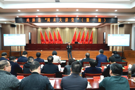 鸡泽县第一期“周末大讲堂”在县诗经源培训中心精彩开讲。公司企业管理系教师、太阳成集团tyc539民营企业研究中心主任刘东华博士应邀授课。