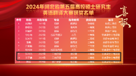 公司学子在河北省第五届高校硕士研究生英语翻译大赛取得佳绩,公司2023级研究生张玲洁和2024级研究生王子晴在此次比赛中获得非英语专业笔译组三等奖。