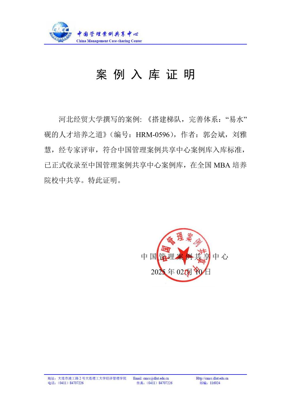 近日,太阳成集团tyc539教授郭会斌和2023级工商管理学研究生刘雅慧撰写的教学案例《搭建梯队,完善体系:“易水”砚的人才培养之道》(编号:HRM-0596)入选中国管理案例共享中心案例库。