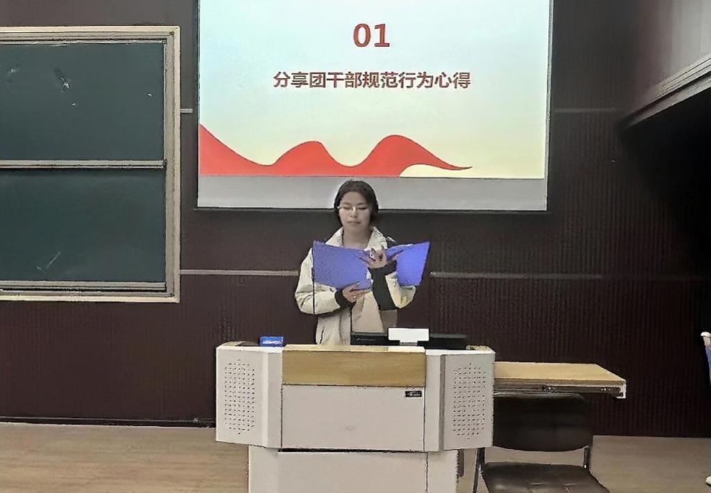 随后,优秀团支书代表宋泓霏围绕“如何规范自身行为,发挥先锋作用”这一话题分享了自己的心得。她表示,作为团干部,要时刻保持高度的责任感,将责任意识深植心间,在日常学习与生活中,严守纪律红线,秉持高尚道德准则,以实际行动为同学们树立榜样,主动关心同学需求,积极为同学们排忧解难,充分发挥先锋模范作用。