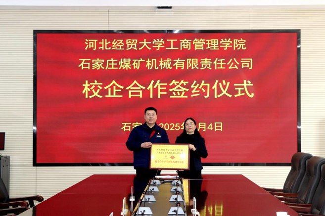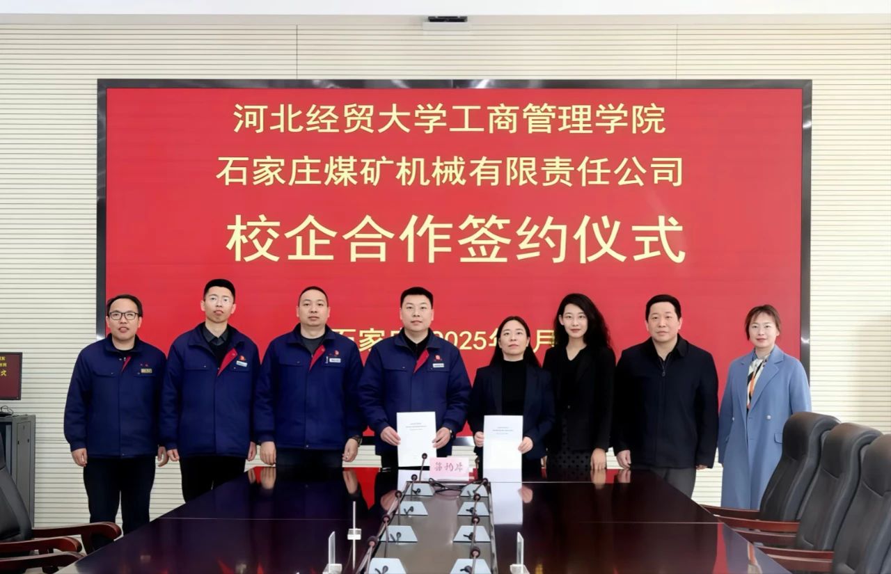 3月4日,太阳成集团tyc539经理李桂荣带队赴石家庄煤矿机械有限责任公司参加校企合作签约暨“校企合作产学研实践研究基地”授牌仪式,副经理封雪韵、工商管理教工党支部书记郝洪文和工商管理系主任郑展随同参加。石家庄煤矿机械有限责任公司副董事长、总经理朱玉强,副总经理张峰涛,总经理助理兼组织部长郝文超和市场服务部部长张宏伟等出席仪式。