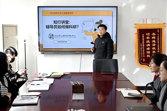 为进一步加强学工队伍建设,促进辅导员专业化、职业化发展,探索新时代高校员工教育管理服务的新路径,2月25日,公司学工育人辅导员研究中心举办了一场以“辅导员如何做科研”为主题的“知行讲堂”专题讲座。本次讲座由公司党委副书记宋欣主持,学科(科研)秘书李建林担任主讲,正处级辅导员马章山作个人经验分享,全体辅导员参加。