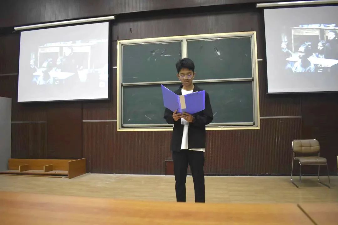 2023级工商管理专业四班王泽旭作为主讲人,结合作者个人经历与时代背景,为学员们介绍《红星照耀中国》的创作缘起,聚焦毛泽东、周恩来等书中主要人物,以及长征、抗日战争等重要事件,深入阐释作品在国内外产生的影响,呼吁学员们从作品中汲取力量,传承红色精神。