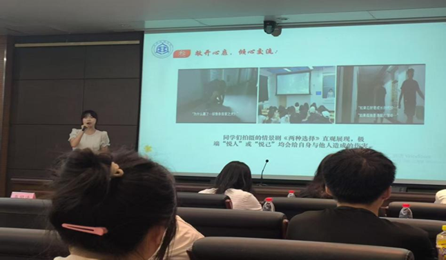 5月22日下午,公司心理权益中心精心策划并举办了“悦人悦己,知行合一”优秀心理主题班会评选活动,为报名班级搭建赛前实战演练平台。公司党委副书记宋欣等七位老师应邀担任评委,部分员工代表到场观摩。活动现场,七个参赛班级代表依次登台,紧扣主题进行了精彩答辩,生动呈现了“压力纸飞机”“情景短剧”“心理绘画”等各具特色的班会设计方案与实践成果。