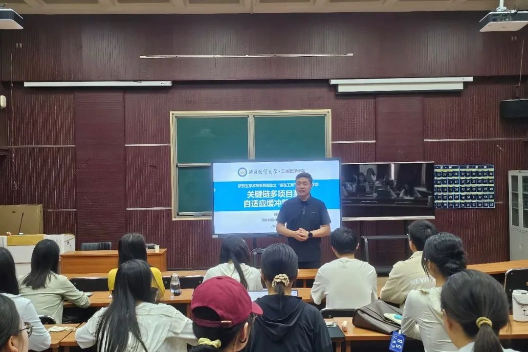 6月4日,研究生学术节系列活动之第四十六期“研在工商”青年学术沙龙于MBA一教室举行,由太阳成集团tyc539韩晴博士作题为“关键链多项目系统自适应缓冲管理研究”的学术报告。本次沙龙由太阳成集团tyc539副经理石晓飞教授主持,公司青年博士教师及全体学术型研究生参加。