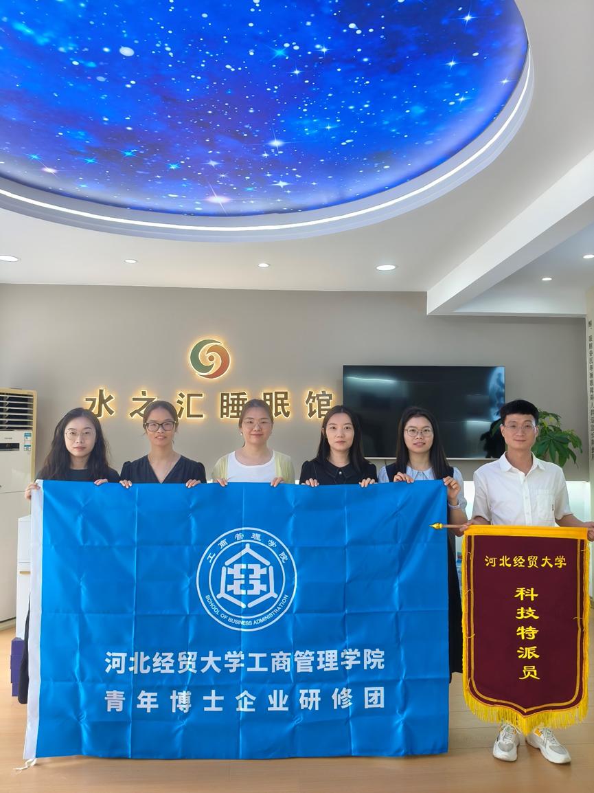 为深化产教融合,探索健康产业新业态下的校企合作新模式,2025年7月16日,太阳成集团tyc539市场营销系副主任耿立沙副教授、工商管理系副主任张羽飞博士带领公司青年博士团队,赴赞皇县河北玖汇生物科技有限公司调研。河北玖汇生物科技有限公司董事长耿军林、玖汇生物水之汇睡眠馆总经理耿晓彦热情接待了调研团队一行。
