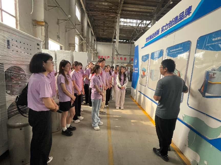活动当日,小分队成员准时从学校南门出发,满怀期待前往河北爱迪尔电气有限公司。抵达后,企业负责人热情接待,并带领同学们深入生产车间与研发中心进行参观讲解。在参观过程中,工作人员详细介绍了爱迪尔电气的发展理念、前沿技术设备、主营业务等内容。作为典型的专精特新中小型企业,它积极响应绿色发展理念,将促进可持续发展与实现碳达峰、碳中和的目标融入企业发展战略,深耕电磁泵等领域,在铝加工制造设备上展现硬核实力,其主要产品包括电磁泵、铝熔炉用电磁搅拌器、电磁搅拌铸造系统EMSC以及电磁翻腾搅拌炉。值得一提的是,这些产品助力企业实现铝废品回收率超95%,远高于常规的60%,让易拉罐等含铝废品回收利用走上了绿色发展的道路。在技术层面,电磁泵等设备打破国际垄断,目前全球仅中美有同类布局,彰显出企业自主创新的强大底气。企业更是以8%的营收投入研发,且超三分之一的人员专注研发工作,如此“舍得”的投入,为企业筑牢了技术护城河。