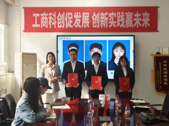 宋欣书记为李紫浩、冯宣铭、郜伊雪三位同学颁发科创中心主任聘书,正式任命李紫浩为新一届科创中心主任,冯宣铭和郜伊雪为副主任。