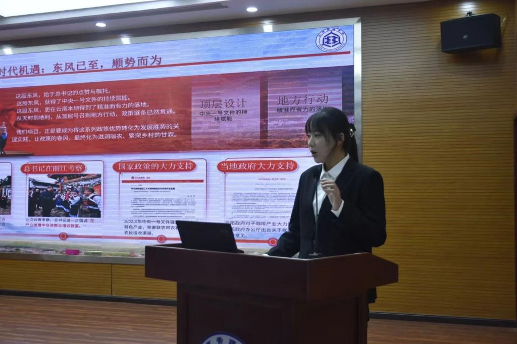赛后,宋欣向现场评委老师的专业指导与工作人员的辛勤筹备致以诚挚感谢,同时对同学们在赛事中展现的创新精神给予充分赞许。她表示,每一次探索实践都是成长路上的宝贵积淀,每一次攻坚克难都是能力提升的坚实阶梯。“挑战杯”作为赋能青年学子成长成才的重要实践平台,为广大学子提供了锤炼本领、展示风采的优质舞台。最后,她倡议更多同学主动参与创新创业赛事,以赛事为纽带深化社会调研、凝聚团队合力,将创意构想转化为兼具可行性与实效性的落地解决方案,在实践磨砺中锤炼专业技能、追求自我突破,充分彰显新时代青年的创新锐气与昂扬风貌。