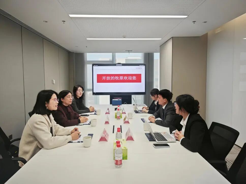 参观结束后,校企双方举行座谈交流会,围绕人才培养、实习就业、课程共建等议题展开深入研讨。座谈会上,李桂荣就公司专业建设情况作了详细介绍。公司紧扣区域经济发展需求,持续优化人才培养方案,完善运营管理教学体系。同时积极申报数智营销新专业,开设短视频拍摄与新媒体运营微专业,全力培养契合数智化时代发展要求的复合型人才。她强调,当前部分员工存在职业目标模糊、能力与岗位需求脱节等问题,希望以此次交流为契机,推动校企合作从单纯的招聘对接,延伸至课程共建、团队共育、实习实训等人才培养全过程,实现资源共享、优势互补。宋欣围绕员工职业生涯规划及就业指导工作进行交流。她表示,公司始终高度重视员工择业观教育,从大一年级起便将择业观教育融入日常教学、主题班会、社会实践等多个环节,帮助员工明确职业方向。希望双方进一步加强日常联动与深度协作,通过企业讲师进校园、优秀员工分享、企业参访等形式,让员工尽早沉浸式接触企业文化、直观了解岗位能力需求。同时,公司将充分发挥辅导员与专业教师的协同育人作用,对照企业用人标准开展精准化培养与指导,向企业推荐符合需求的优质人才。