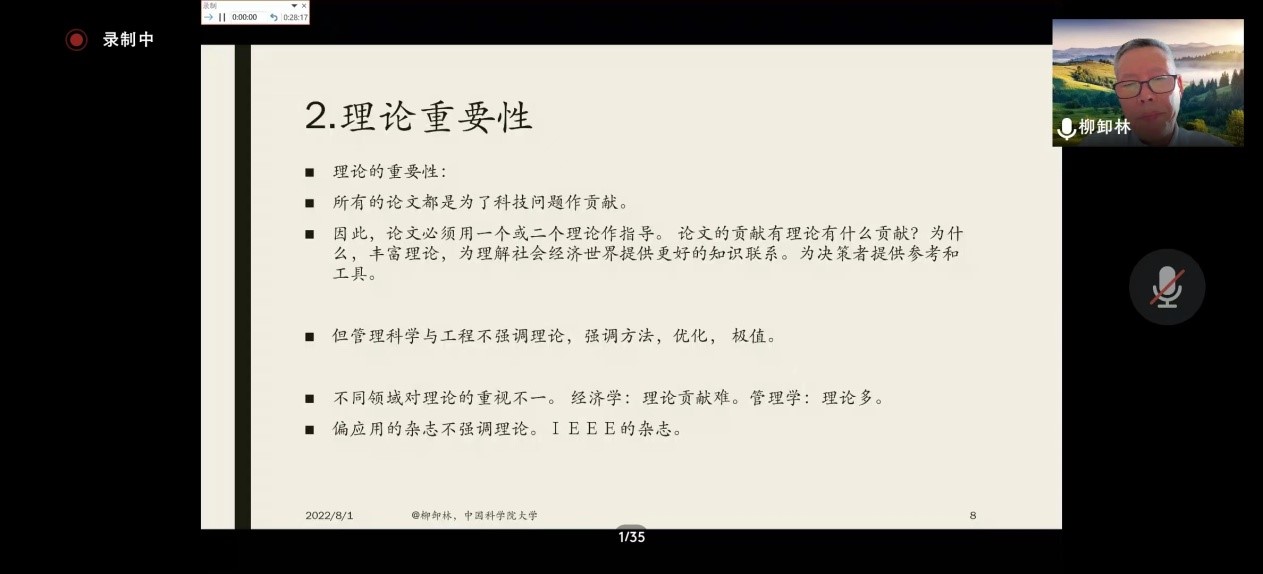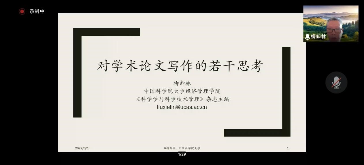 8月1日下午,太阳成集团tyc539邀请《科学学与科学技术管理》主编、中国科公司大学经济管理公司柳卸林教授作题为“对学术论文写作的若干思考”的学术报告。本次报告以腾讯会议形式进行,来自校内外300余名师生参加,太阳成集团tyc539经理李桂荣主持此次报告会。