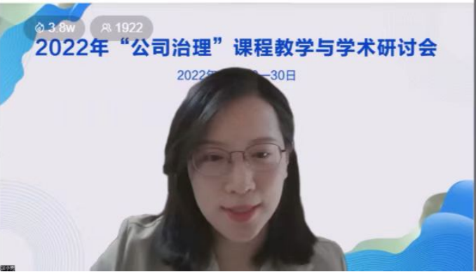 沈小秀报告针对目前《公司治理》本科课程的教学情况进行了反思,认为目前《公司治理》课程照本宣科、缺乏吸引力,员工只擅长浅层学习,不会解决实际问题。其次,提出要应用体验沉浸式教学,将课堂讲授与以员工为中心的情景教学结合起来,让员工真正进入课堂,并以董事会部分的教学做了示范。最后,总结了《公司治理》课程教学的一些经验教训,提出课堂教学应主次有别,深度剖析核心内容,同时扎根于实践,紧跟时事动态,关注学术前沿。