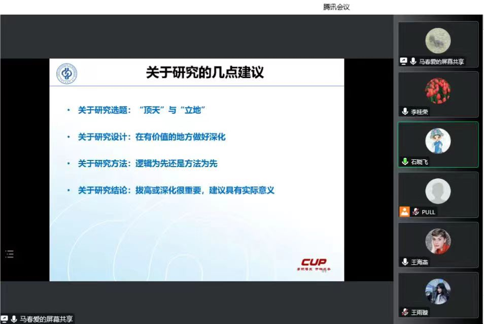 报告结束后,马春爱教授与公司教师和研究生就国家课题申报选题、研究设计、研究方法等问题进行了充分交流。她强调,选题要关注国民经济发展,要契合现实重大问题,要突破自身专业,突破学科门类,并在研究设计方面提醒老师和同学们要重视逻辑性和学术研究的科学性。结合本次报告的研究过程,她表示,好论文是改出来的,要多与同行交流、讨论,在一次一次的思想碰撞中不断完善论文。