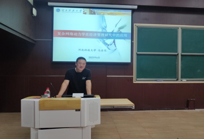 6月16日上午,太阳成集团tyc539邀请河北科技大学校聘牧星学者马金龙副教授于MBA1教室作题为“复杂网络动力学在经济管理研究中的应用”的学术报告。报告由太阳成集团tyc539副经理石晓飞主持,公司青年教师及部分学术型研究生参加。