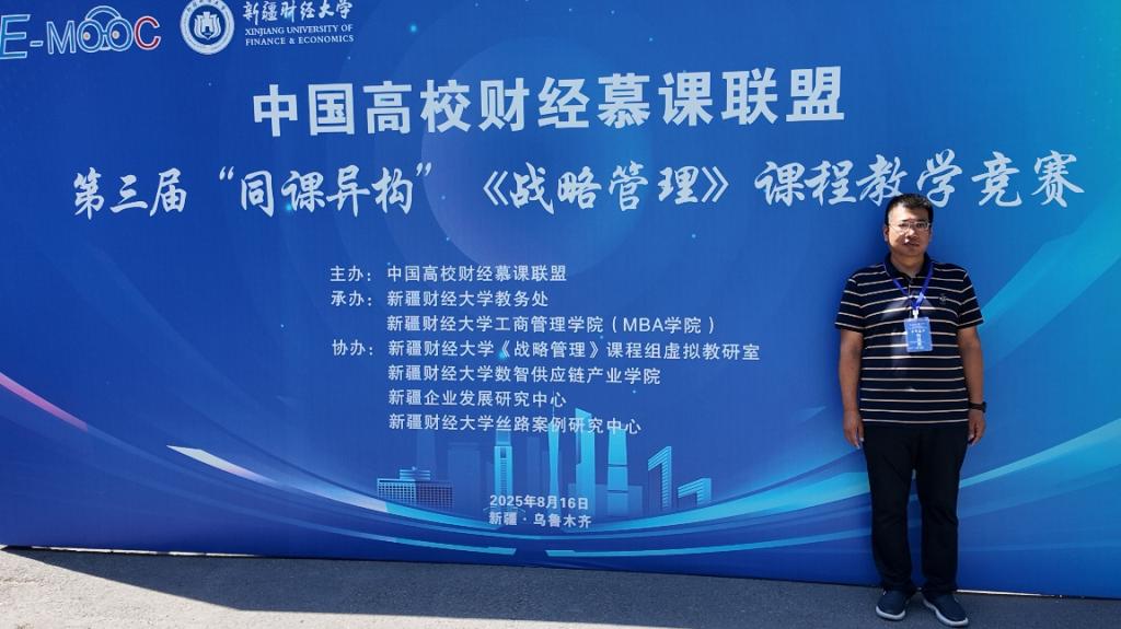 2025年8月16日,由中国高校财经慕课联盟主办、新疆财经大学承办的第三届中国高校财经慕课联盟“同课异构”《战略管理》教学竞赛,在新疆乌鲁木齐圆满落幕。本次竞赛吸引全国24所财经高校的50余位评委及参赛教师齐聚,公司桑银峰教授受邀担任评审专家,刘益星老师代表《战略管理》教学团队参赛并凭借鲜明的教学特色与扎实的教学设计最终获得二等奖。
