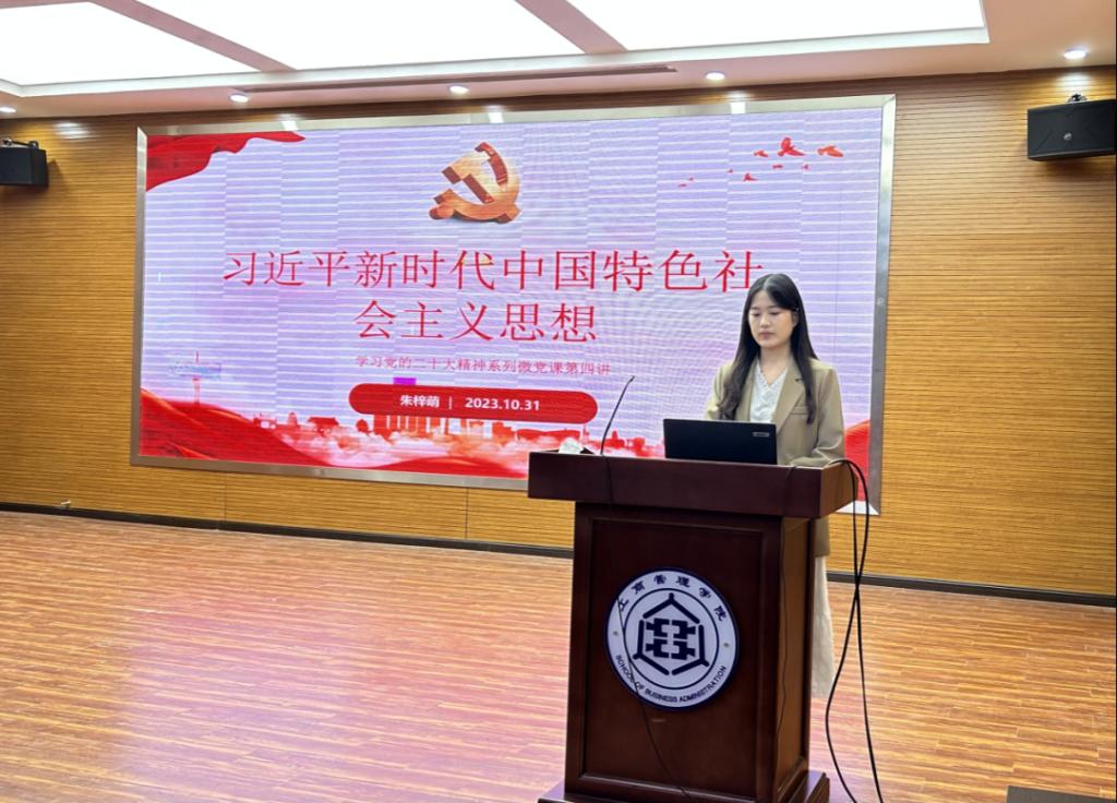 2023级工商管理专业研究生朱梓萌主讲本届第四期微党课习近平新时代中国特色社会主义思想。首先,通过全国宣传思想文化工作会议引出本次微党课主题,指出习近平文化思想是新时代党领导文化建设实践经验的理论总结,是对马克思主义文化理论的丰富和发展,是习近平新时代中国特色社会主义思想的文化篇。在会议上,党中央正式提出并系统阐述了习近平文化思想。这是一个重大决策,在党的理论创新进程中具有重要意义,在党的宣传思想文化事业发展史上具有里程碑意义。其次,从坚持党的文化领导权、推动物质文明和精神文明协调发展、“两个结合”的根本要求、新的文化使命、坚定文化自信、培育和践行社会主义核心价值观、掌握信息化条件下舆论主导权和广泛凝聚社会共识、以人民为中心的工作导向、保护历史文化遗产、构建中国话语和中国叙事体系以及促进文明交流互鉴这十一个方面介绍了关于深入学习领会习近平文化思想的重要论述,深入学习领会习近平文化思想是全党尤其是全国宣传文化战线的一项重要政治任务。最后,重点指出要坚定文化自信,不断确立文化主体性,要有开放包容的文化心态,坚持与时俱进和守正创新,这样才能担负起新时代的文化使命。