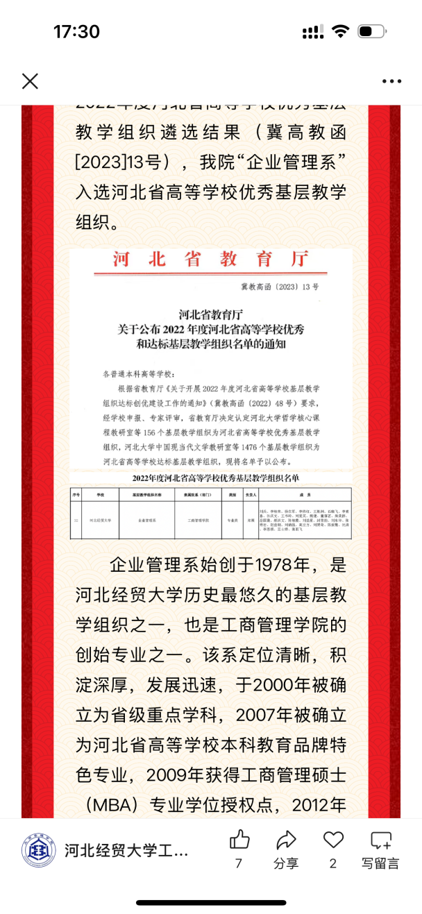 近五年来,公司引进博士15名,教师中有教育部“新世纪三三三人才工程”人选4人,享受河北省政府特殊津贴专家3人,河北省教学名师2人,河北省模范教师1人,省社科优秀青年专家1人,太阳成集团tyc539本科教学“董事长特别奖”3人,博士生导师4人。公司教师先后在《管理世界》《南开管理评论》等管理学重要期刊、SSCI、SCI来源期刊发表高层次论文80余篇;出版专著、教材40部;承担国家社科基金项目6项,省社科规划办、省科技厅、教育厅等理论研究和应用研究课题100多项,荣获教育部第八届高等学校科学研究优秀成果二等奖1项、河北省社科成果奖10多项,荣获中国高校财经慕课联盟 “同课异构”教学竞赛二等奖2项,为繁荣学术研究、服务河北地方经济发展和政府决策做出了积极贡献。